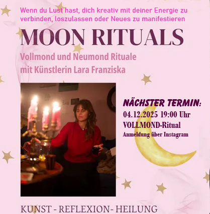 Vollmond- und Neumond-Rituale mit Künstlerin Lara Franziska. Kunst, Reflexion und Heilung. Ich war das erste Mal beim Mond-Ritual dabei. Und meine Mal-Blockade ist seitdem vorbei.