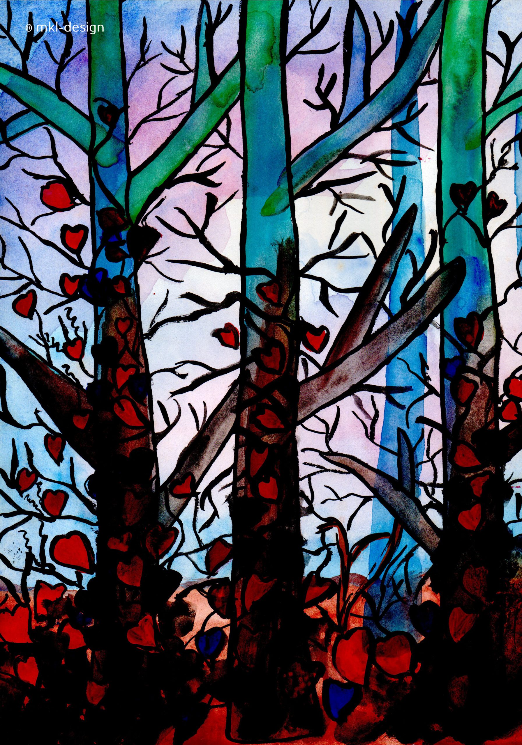 Ein paar Bilder vom Wald. Inspiriert von einem schönen Profi-Aquarellbild, das bei meinen Eltern an der Wand hing.