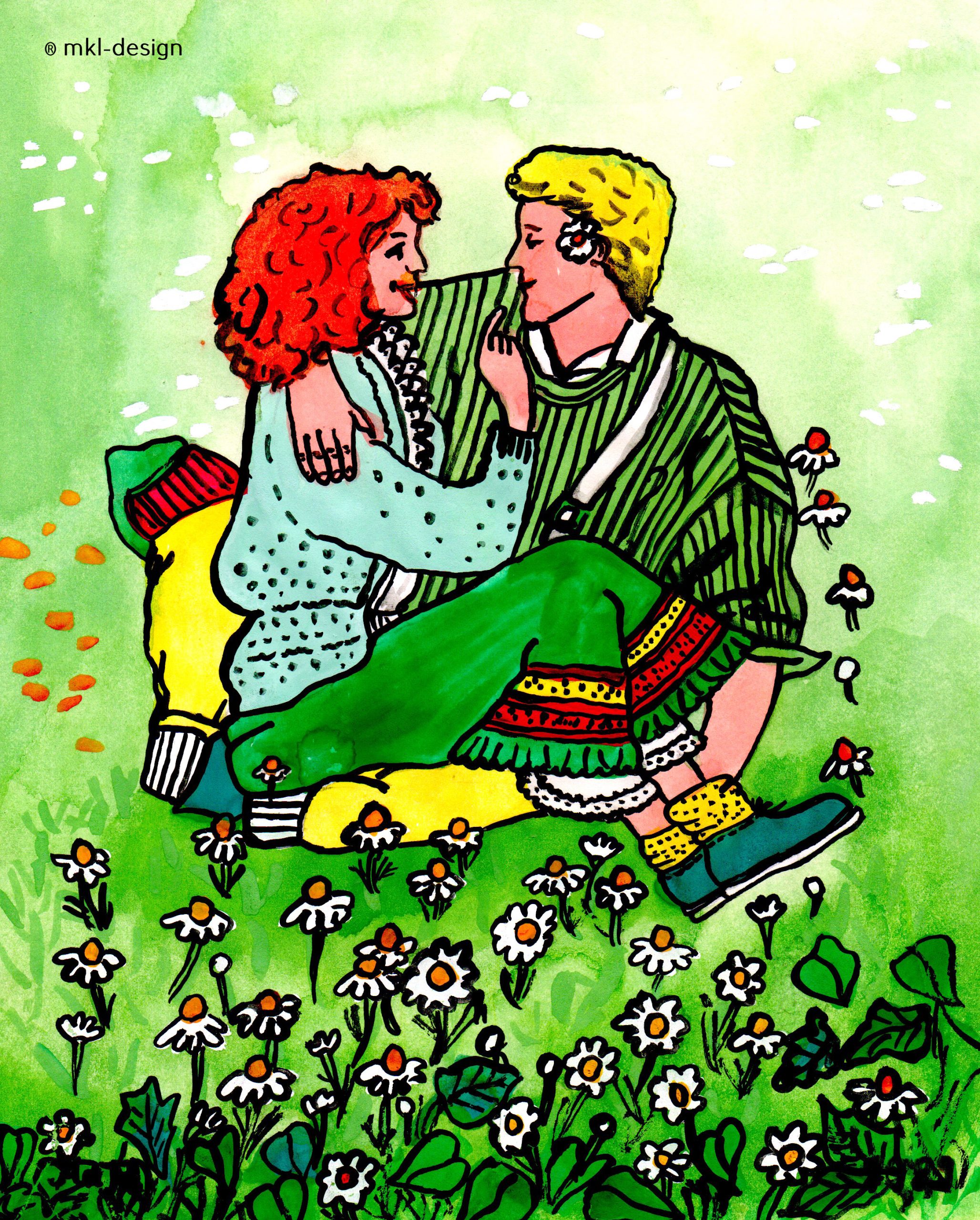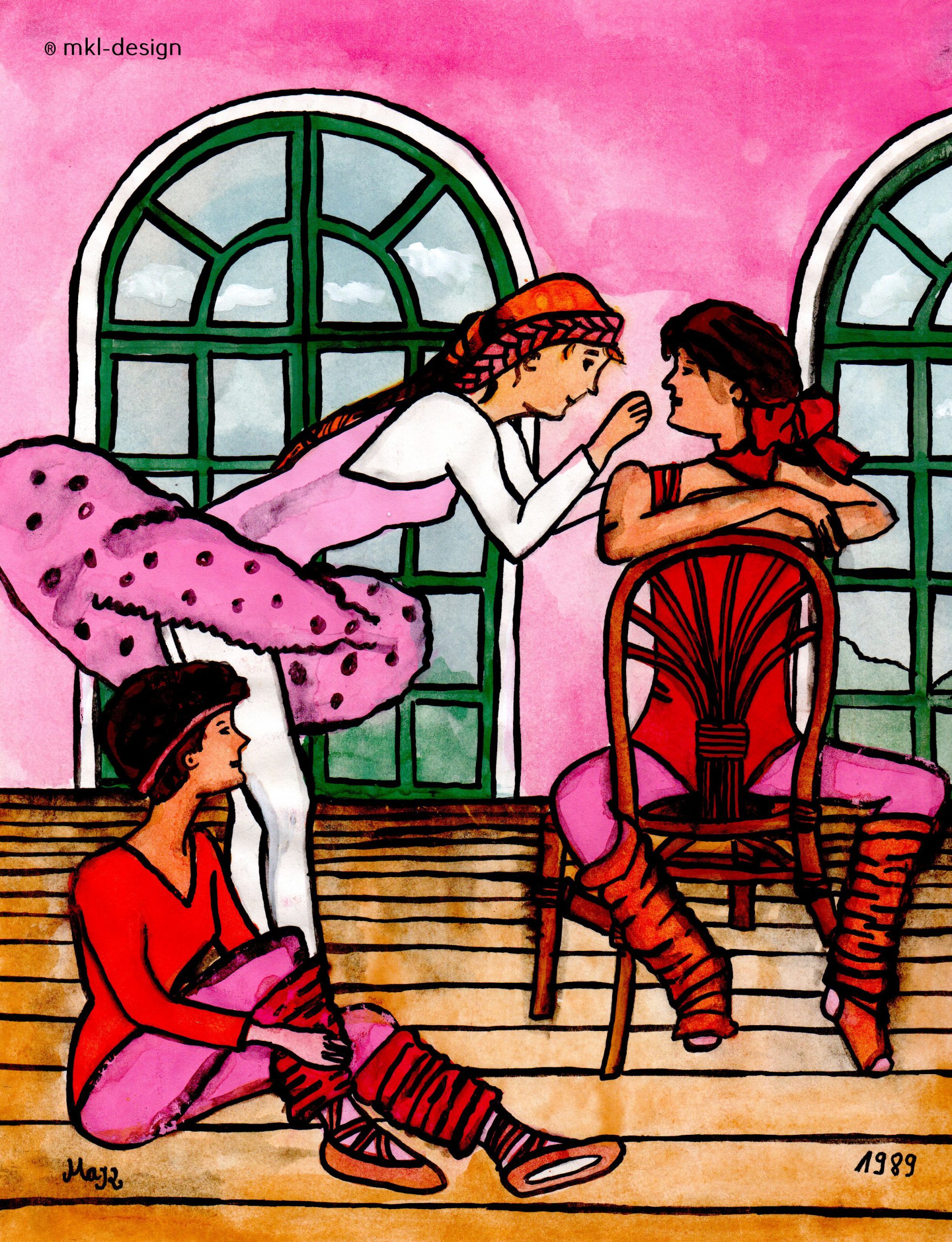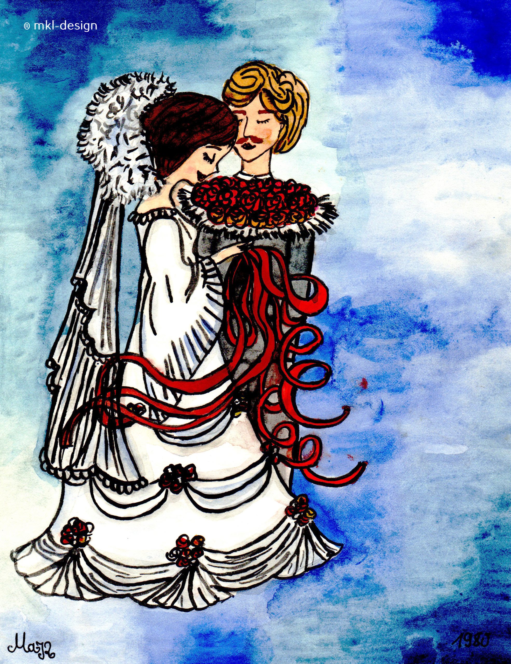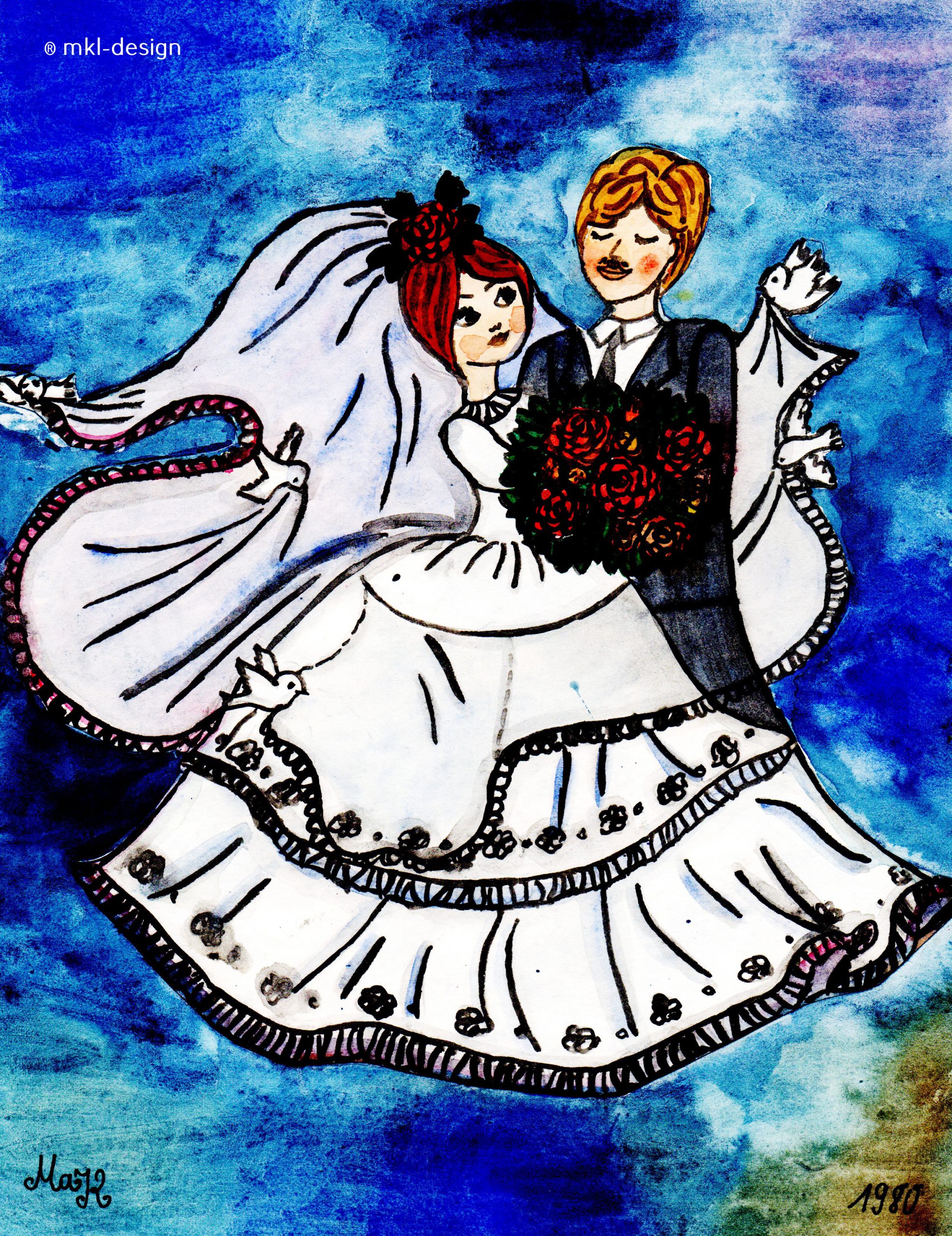 Als junge Frau war ich Romantikerin. Dementsprechend malte ich meine Bilder. Zu den ersten Arbeiten zählen meine Interpretationen der berühmten Sarah-Kay-Bilder der Künstlerin Vivien Kubbos, die hier aber (noch) nicht aufgeführt sind.