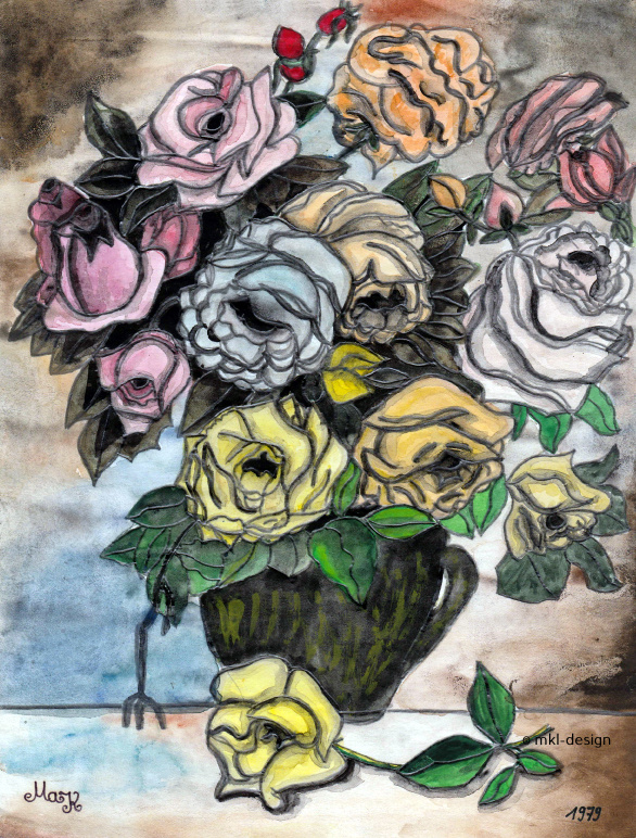Die hier abgebildeten Rosen wurden von tatsächlichen Blumen abgemalt. Sei es im Garten oder auch bereits in der Vase.