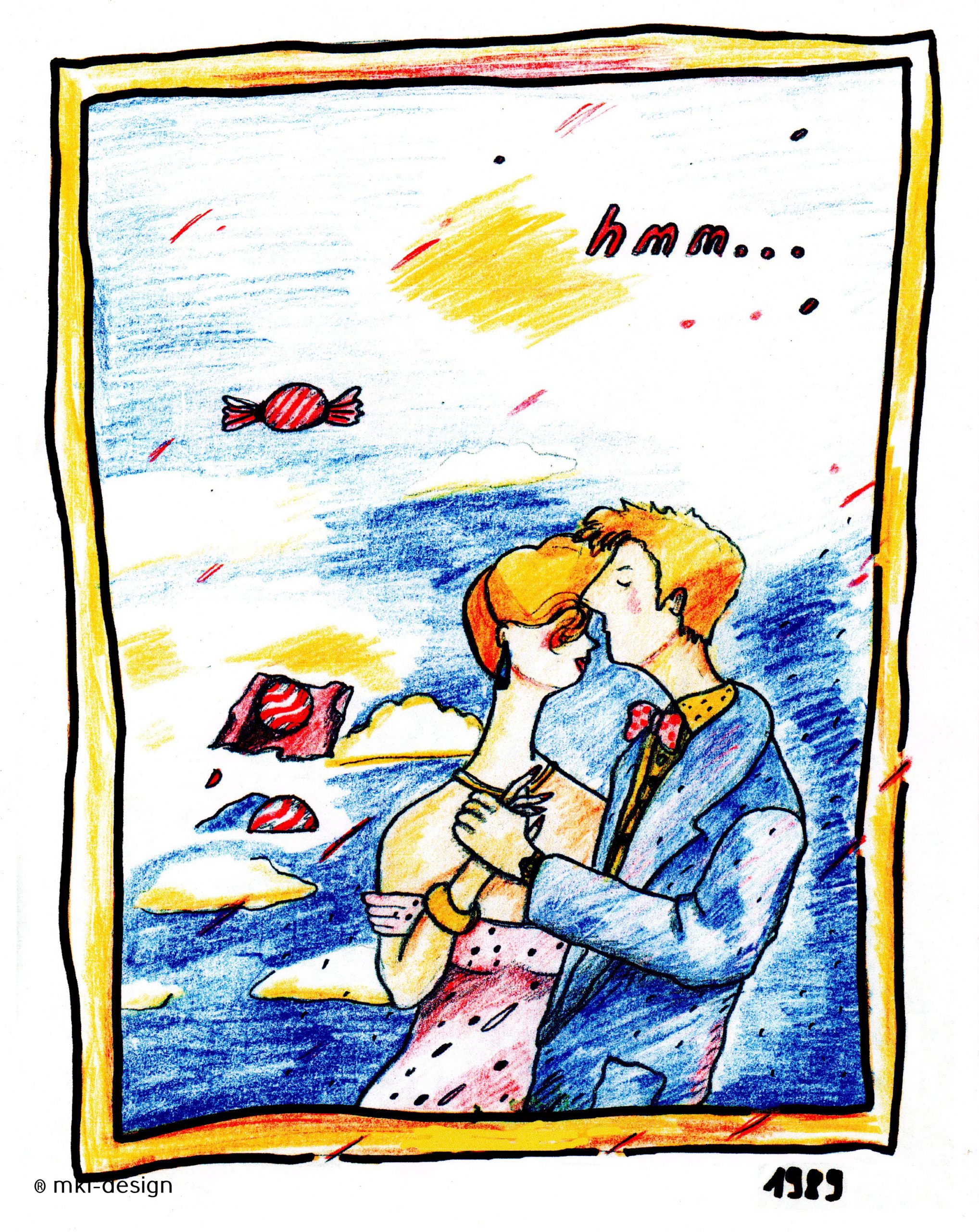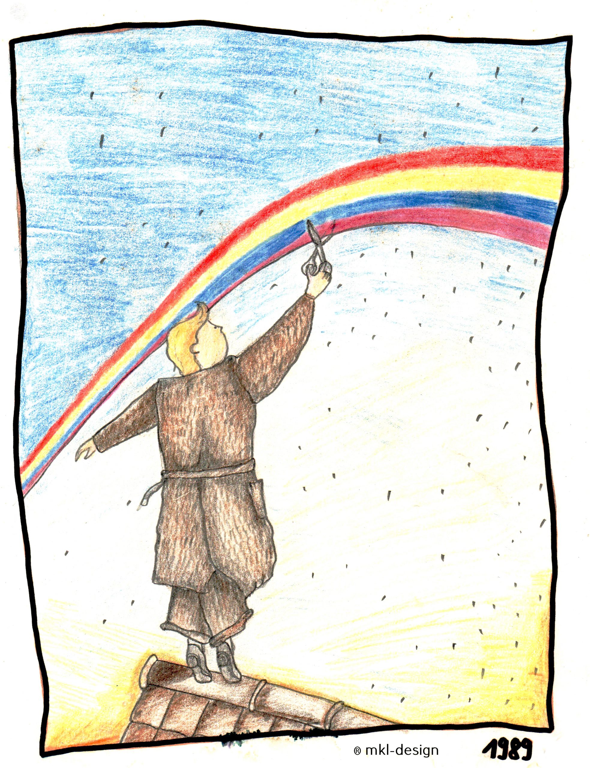 Dabei handelt es sich nicht um Aquarell-Buntstifte. Die gab es damals noch nicht. Da es leichter ist, mit einem Stift anstatt mit einem Pinsel zu zeichnen, kreierte ich viele Bilder so. Heute kann man mit den modernen Malmitteln noch viel mehr Effekte erreichen.