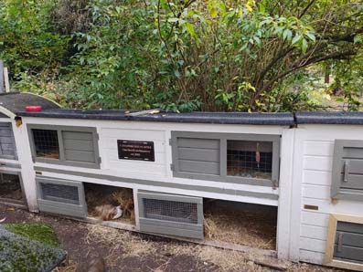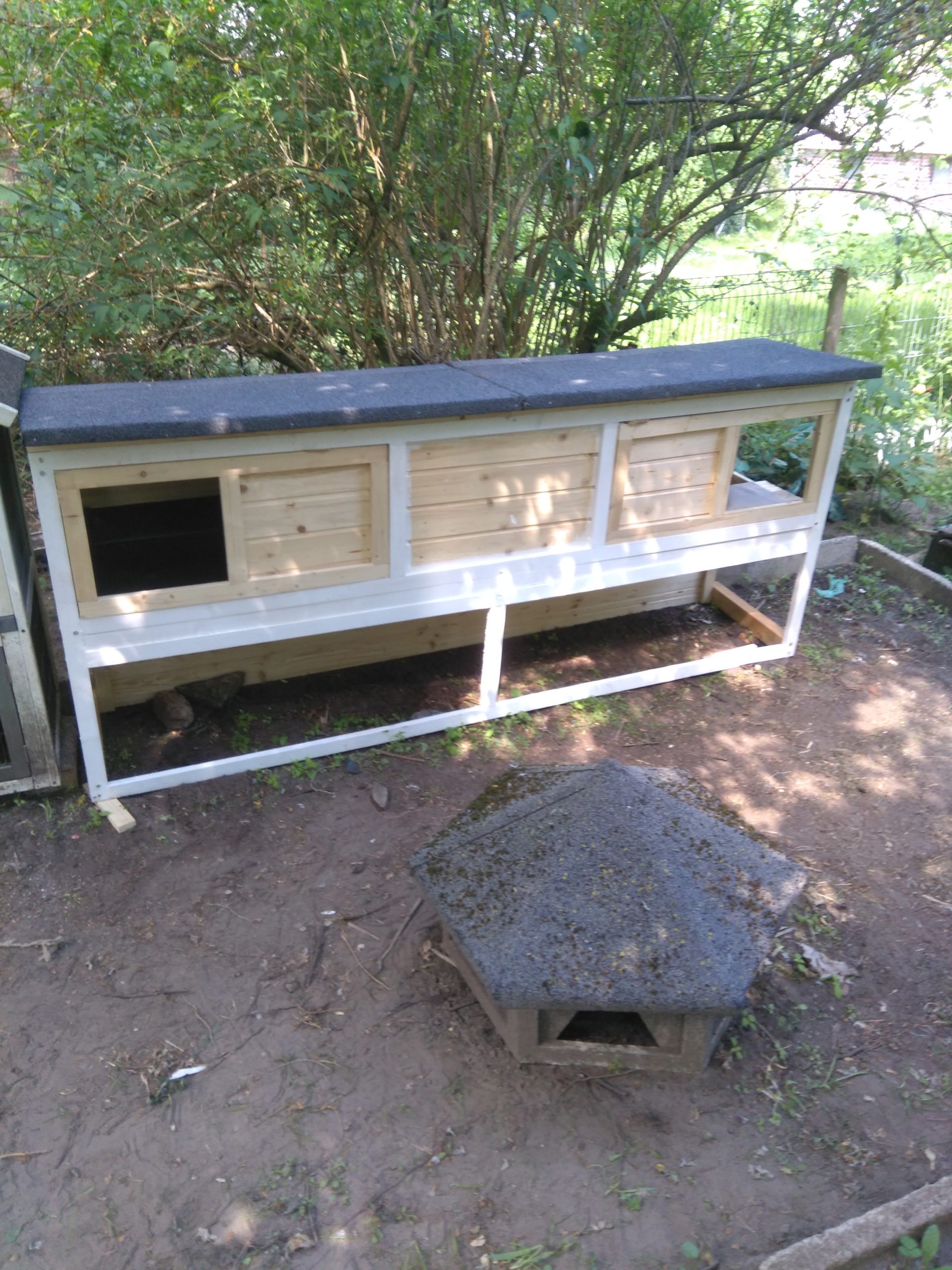 Vier Meerschweinchen (Cavia Porcellus) in der Wohnung wollten gerne mehr Platz und viel Frischluft. So entstand die Idee für die Außenanlage. Das Sommerhaus.