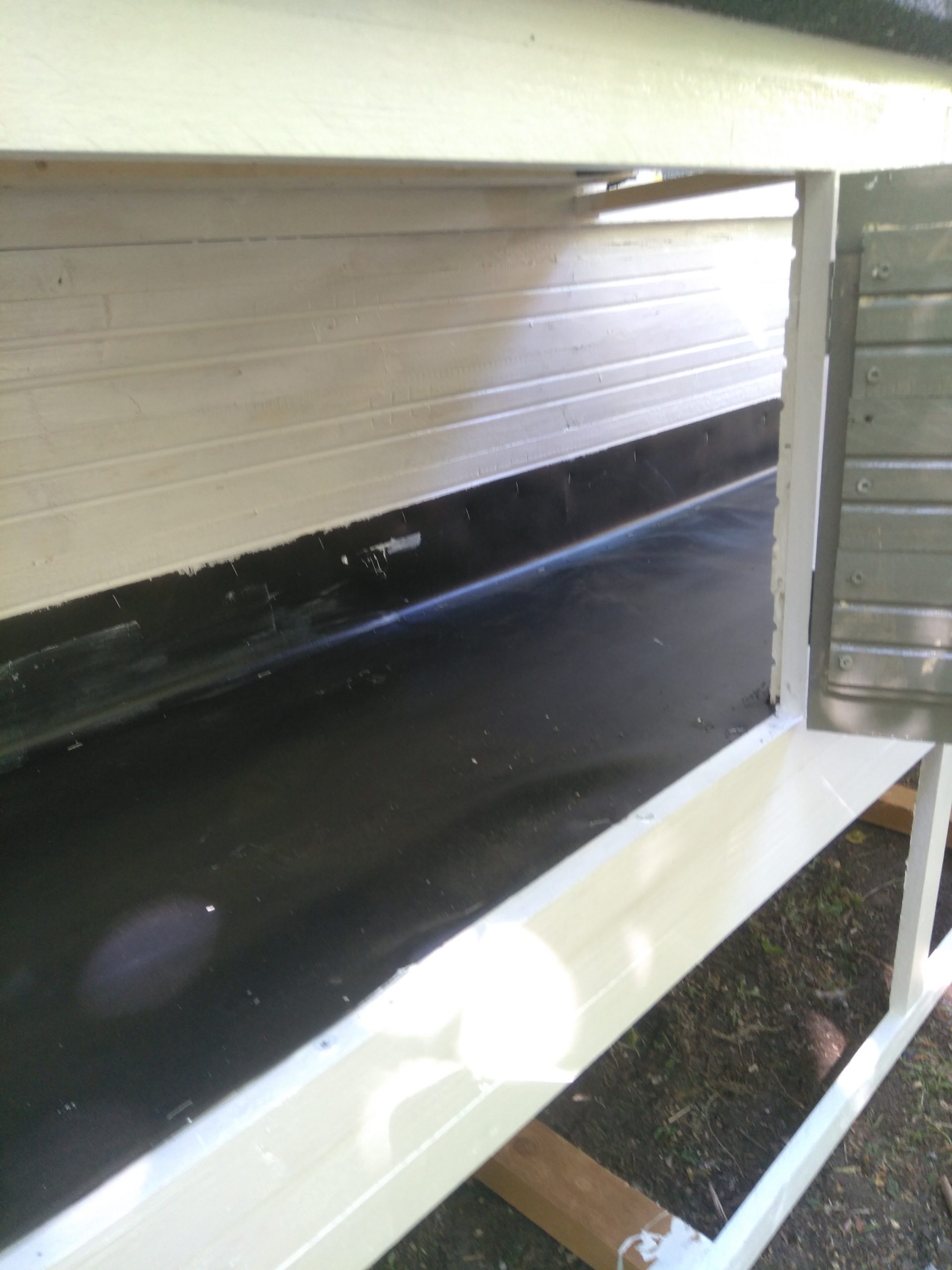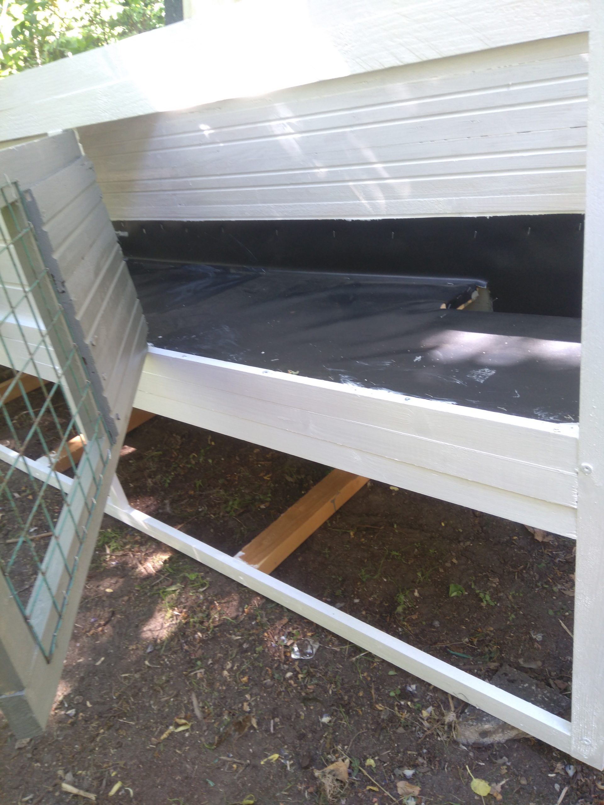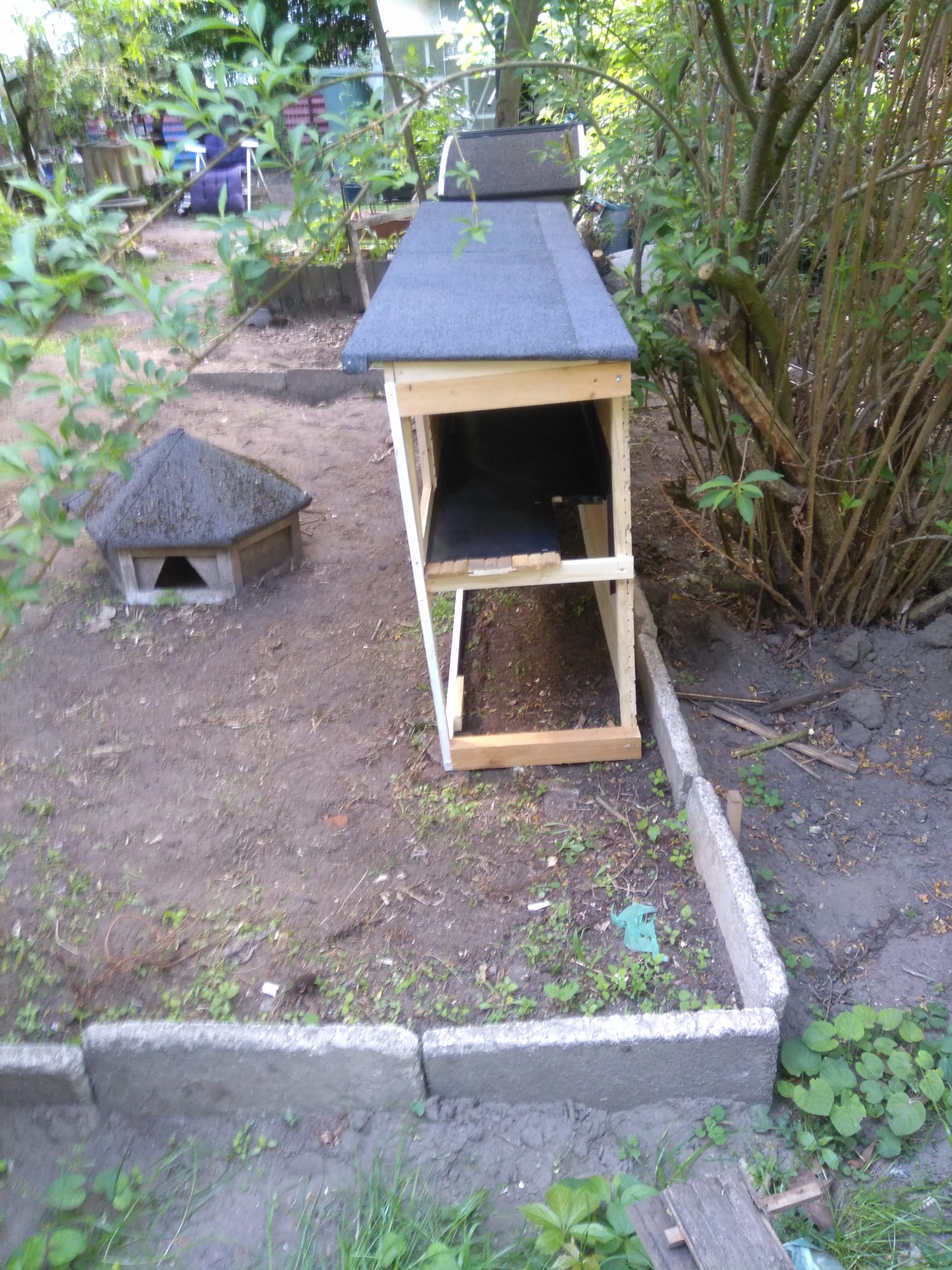 Wegen der besseren Benutzung gab es zuerst zwei Dachplatten. Später schraubte er sie mit einer Leiste zusammen.