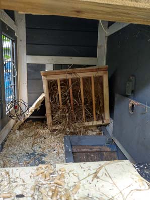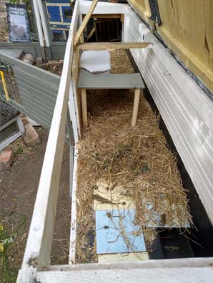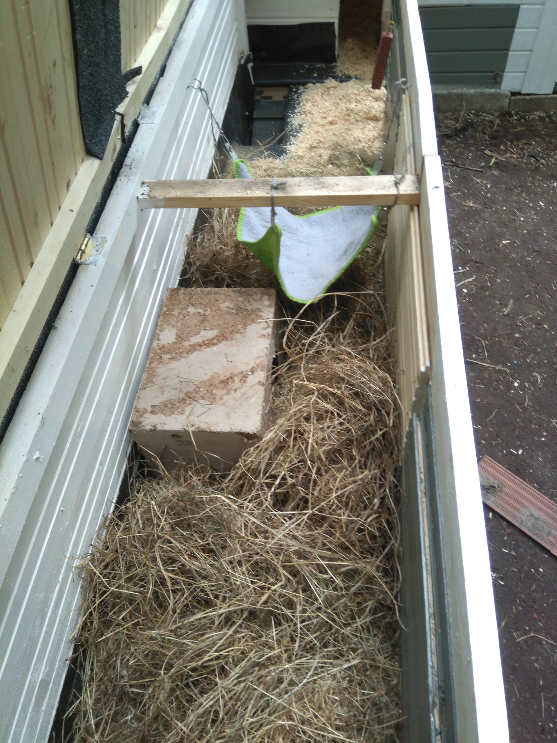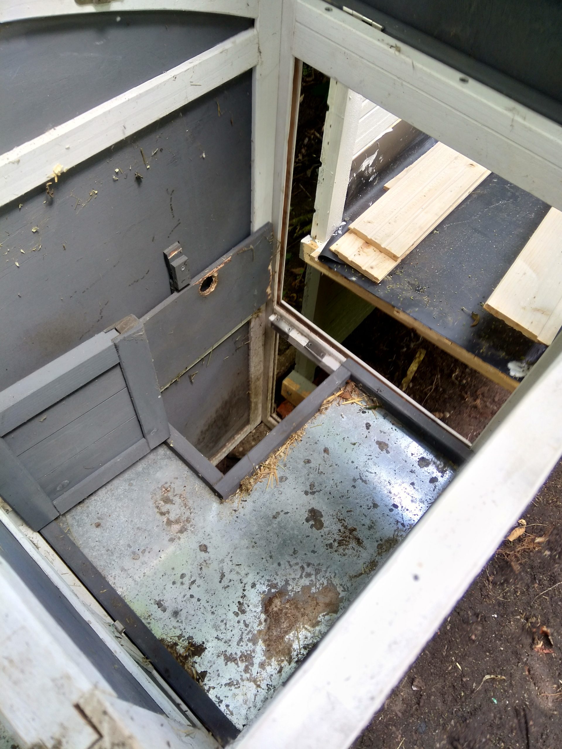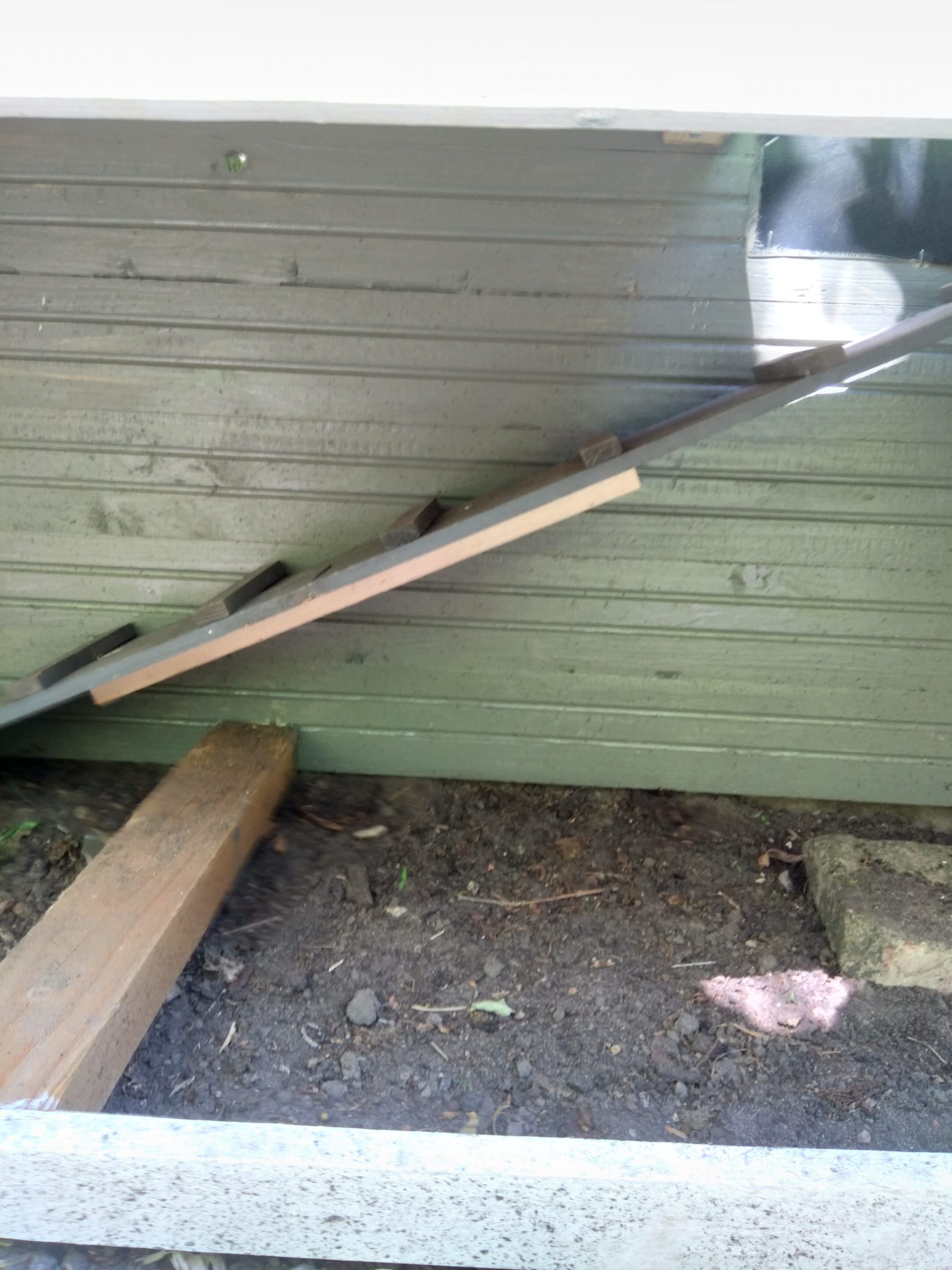 Wegen der besseren Benutzung gab es zuerst zwei Dachplatten. Später schraubte er sie mit einer Leiste zusammen.