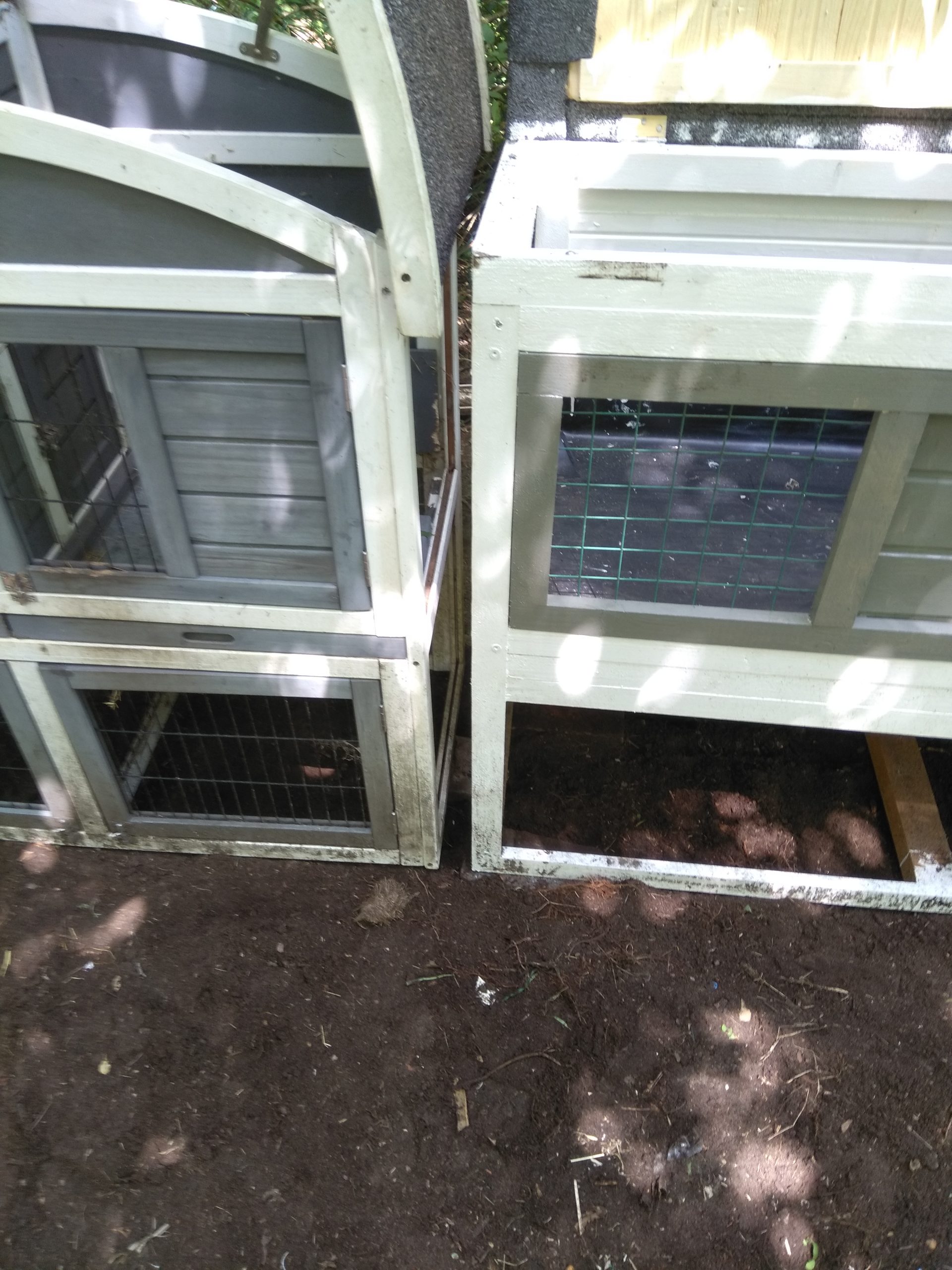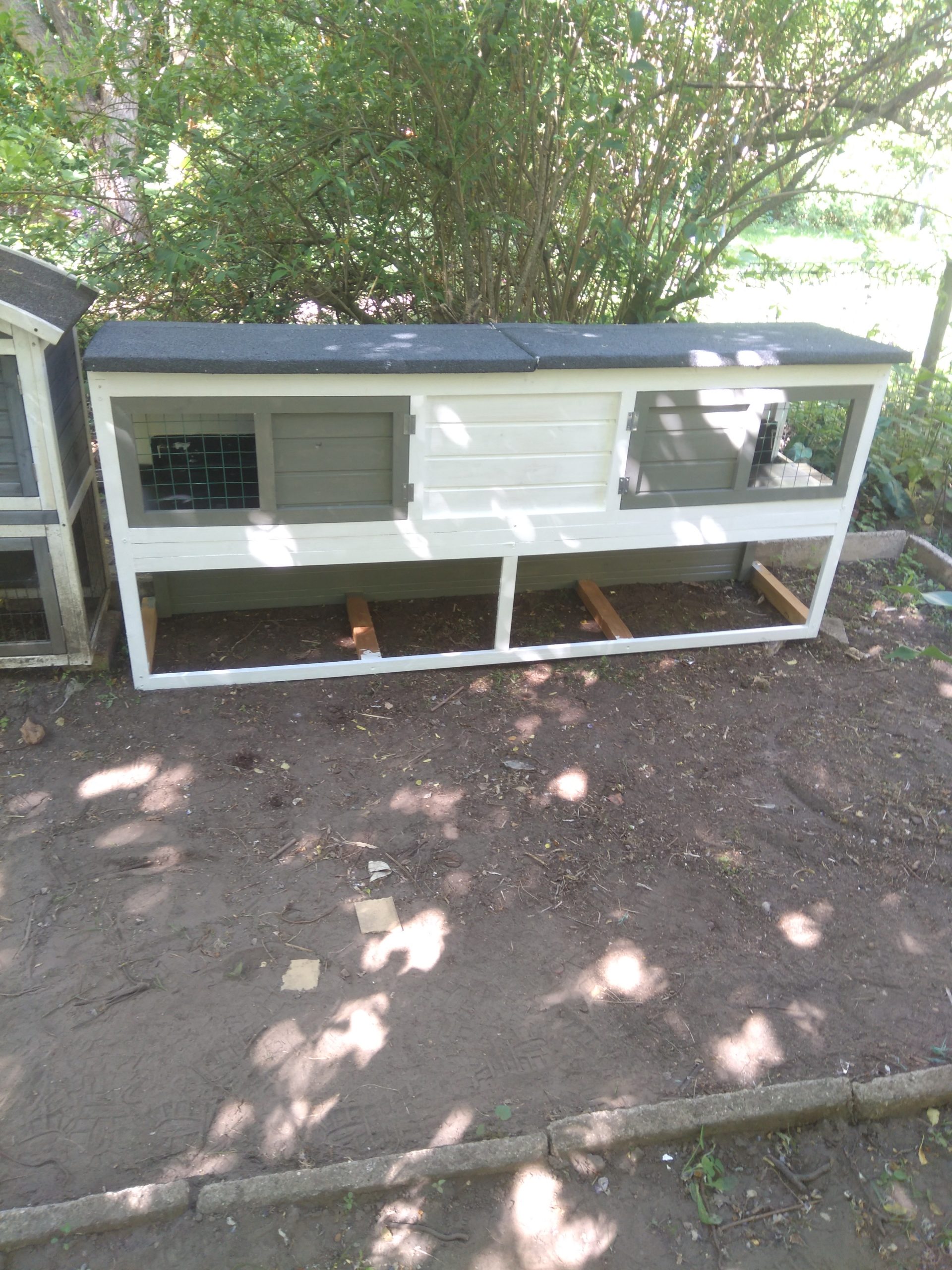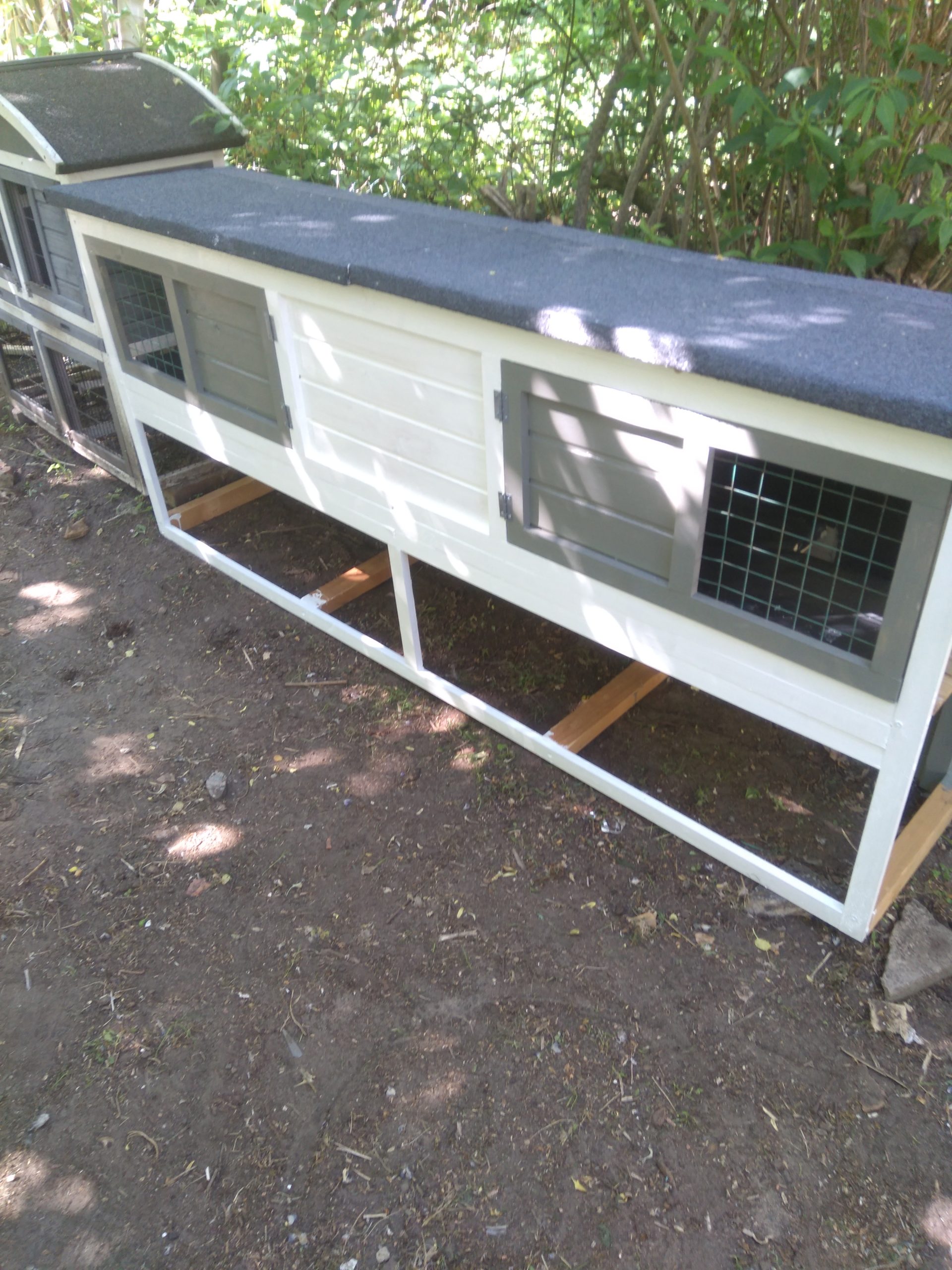 Am 07. Juli zogen die Meerschweinchen ein. Währenddessen ging der Bau allerdings noch weiter. Zuerst kam der Zaun, ohne Gitter. Schnell folgten die Gitter und dann noch die beiden Türen.