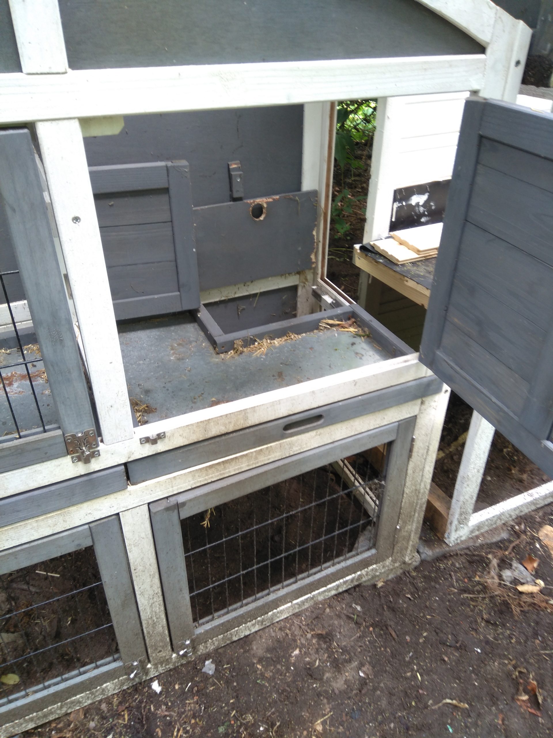 Eigentlich sollte das Sommerhaus unten offen bleiben. Aber ich hatte meine Bedenken, dass die Meerschweinchen sich so nicht wohlfühlen könnten. Zuerst stellten wir die Frage hinten an.