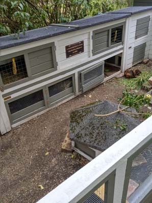 Um die Meerschweinchen einmal einfangen zu können, entwarf Rainer Schiebetüren und Klappen für die Treppenhäuser, die aus Zeitgründen noch nicht angeschraubt wurden.