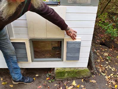 Fenster sind ein Schwachpunkt. Damit das Winterhaus schon dicht wird, gibt es noch gefütterte Fensterläden.