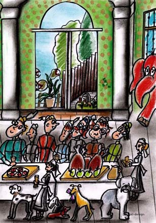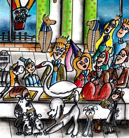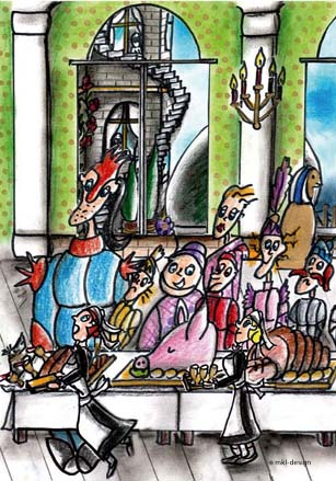 Geladene Gäste waren König Hanswurst von Trapsen und seine Tochter Prinzessin Mamelade von Trapsen, der Kleine Ritter Kapitän Langhaar mit seiner Tochter Flotta, Sir Lancelot, der Schwarze Ritter, Großes Glück und Spuki. Der Kleine Ritter und Sir Lancelot standen als Trauzeugen zur Verfügung. Die Feier fand im kleinen Kreis statt.