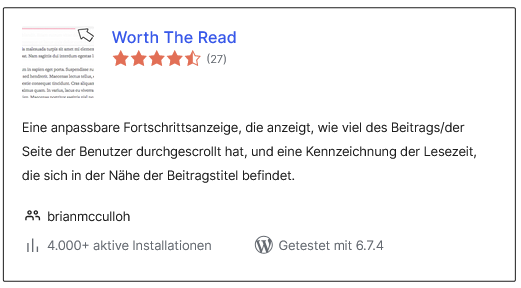 Worth the Read: Ein sehr unauffälliger und leichtgewichtiger Lesefortschrittsbalken, der dem Benutzer anzeigt, wie weit er durch den aktuellen Beitrag oder die Seite gescrollt ist.