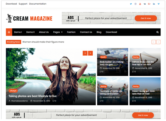 Cream Magazine ist ein WordPress–Theme für Nachrichten & Magazine, welches über ein sauberes & modernes Design verfügt, das für Jeden passt, der seine Geschichten teilen, täglich bahnbrechende Nachrichten veröffentlichen oder über andere Themen, schreiben will.