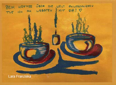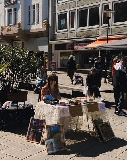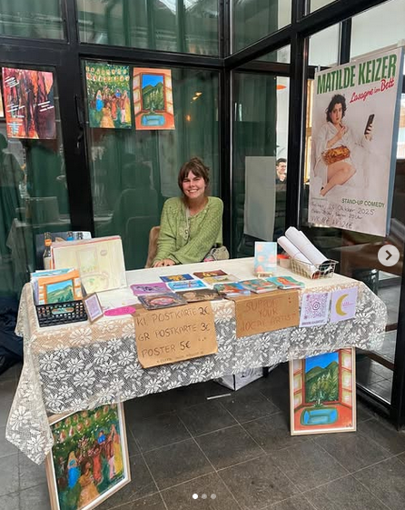 Die Prints ihrer schönsten Werke verkauft sie auf vielen Flohmärkten in Hamburg, Hannover, Leipzig oder Hildesheim mit viel Erfolg.