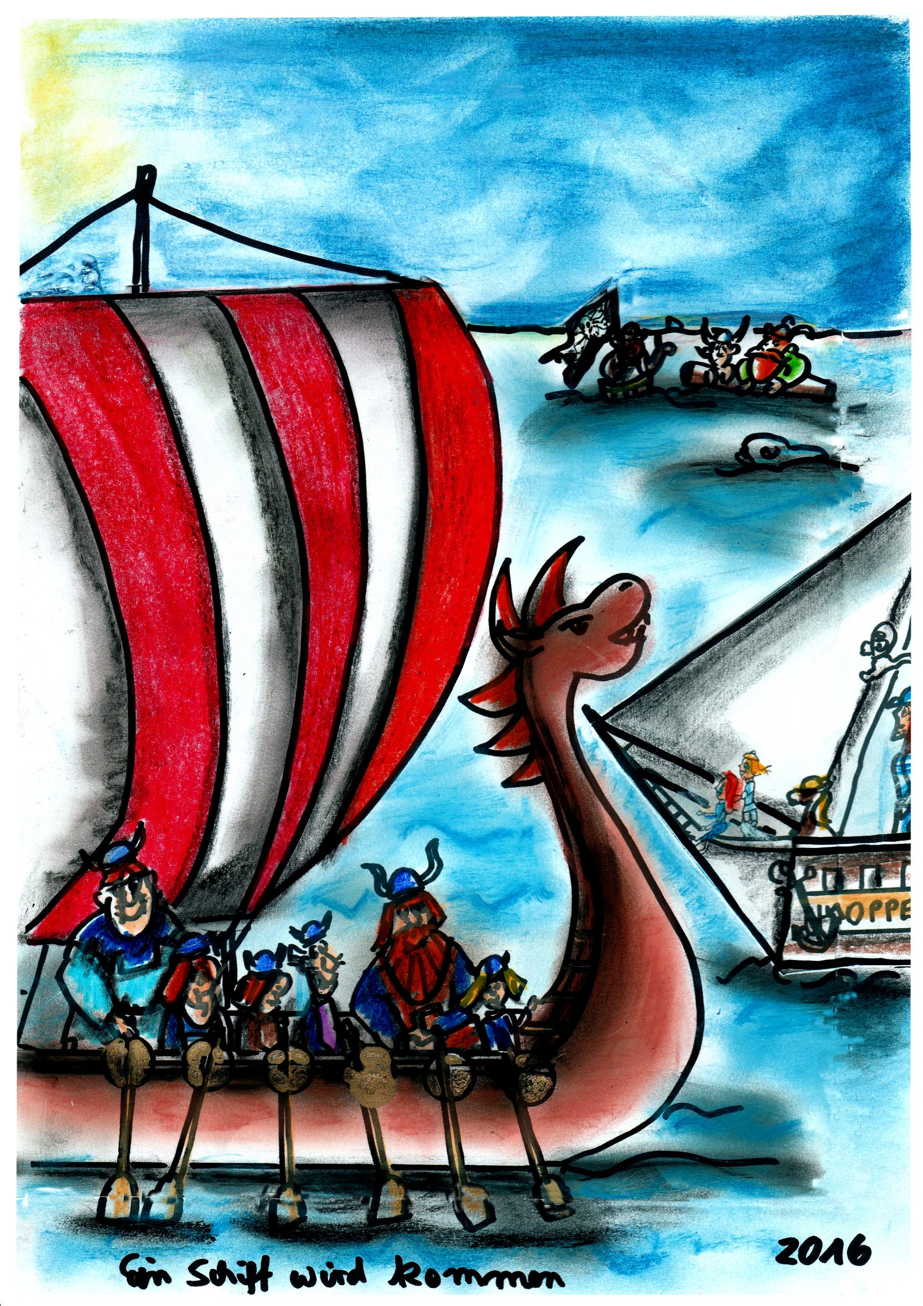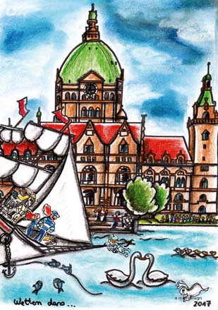 Das hat mir das Ganze erheblich erleichtert. Da ich eine längere Pause zwischen den Zeichnungen hatte, wäre es schwierig geworden, wieder die richtigen Farbtöne zu finden. Ich verwendete die Aquarell-Buntstifte von Koor-I-Noor Hardtmuth.