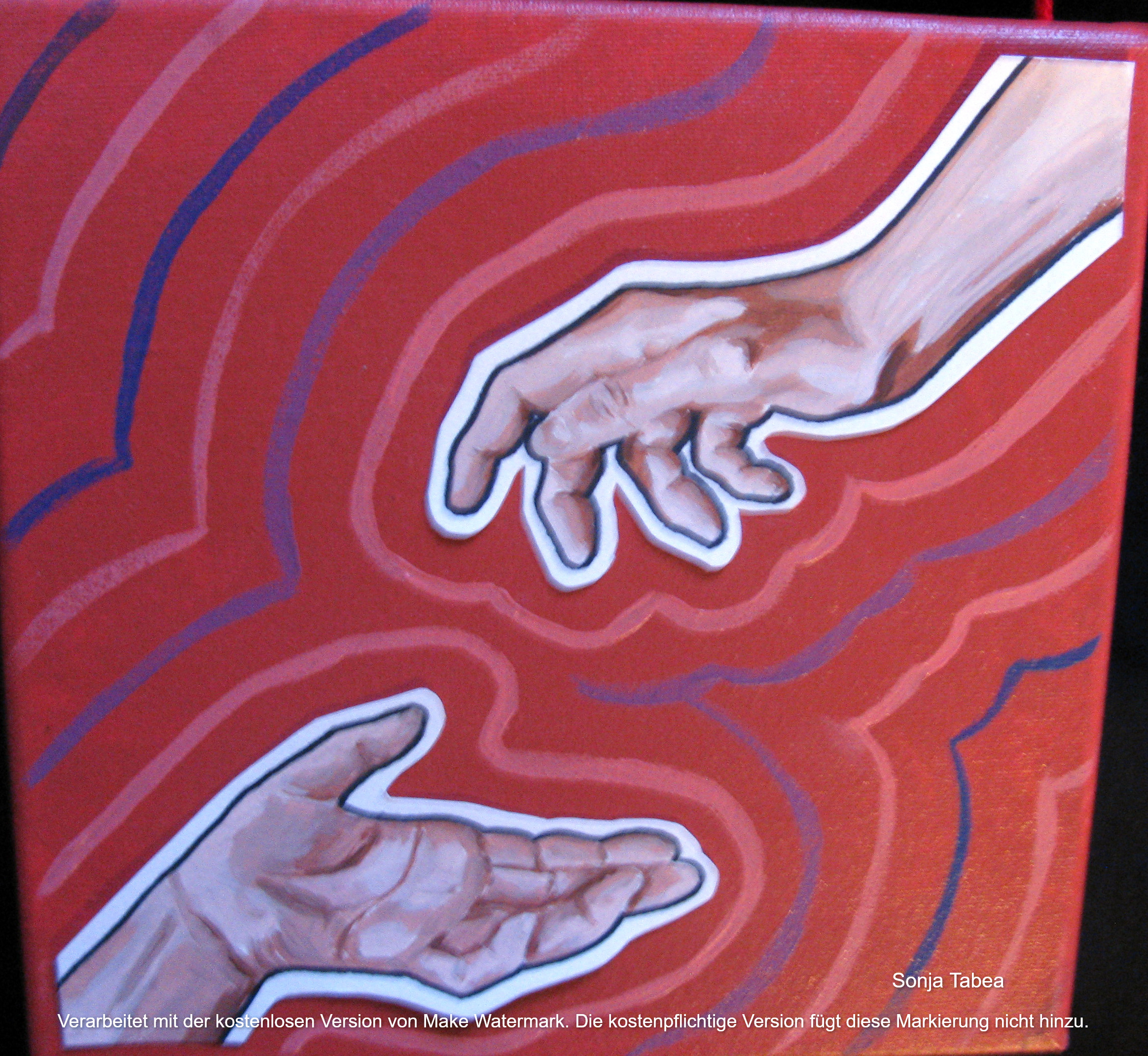 Sonja Tabea macht zurzeit eine zweijährige Ausbildung zur Gestalttechnischen Assistentin in Hannover. Dafür hat sie ihre Ausbildung zur Friseurin aufgegeben und will sich ganz auf die Kunst konzentrieren, was bestimmt eine gute Idee ist, wenn man ihre wunderbaren Bilder betrachtet.
