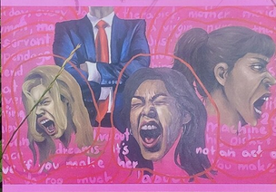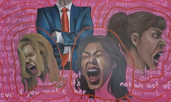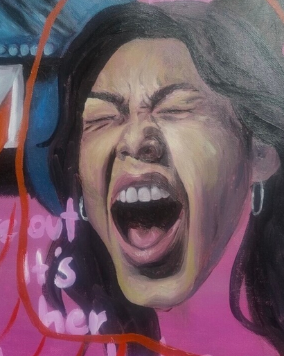 Bild 7 und 8: Female Rage (27.11.2024), 60x100cm, Original in Öl, 338,- Euro