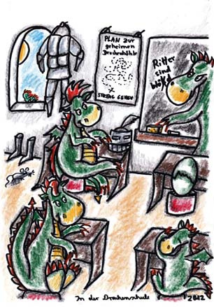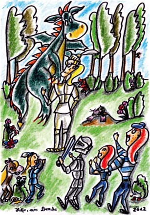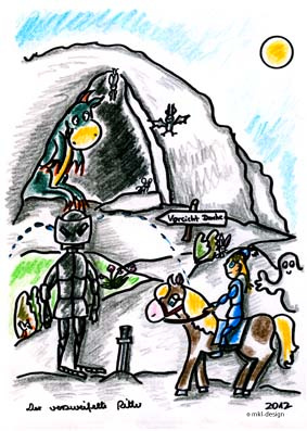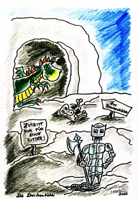 Bild 1: Was soll ein Drache schon tun, wenn ständig irgendwelche Ritter bei ihm auftauchen, die mit ihm kämpfen wollen? Da hilft nur, Warnschilder aufzustellen.