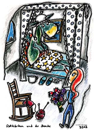 Bild 2: Flotta erzählt, wie die Geschichte von Rothärchen und der Dache wirklich ablief.