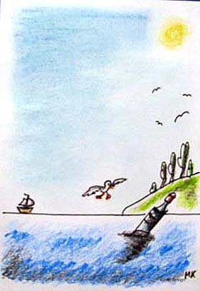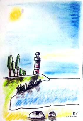 Ein Bild schenkte ich Anais, meiner anderen Zimmernachbarin, mit der ich trotz aller Sympathie wenig Kontakt hatte. Und leider habe ich das Bild nicht fotografiert, bevor ich es ihr schenkte. Sie freute sich über das einsame Haus am Strand.